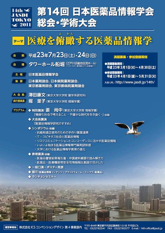 2010.10.19 大会長より「第14回日本医薬品情報学会総会・学術大会開催にあたって」を掲載しました。