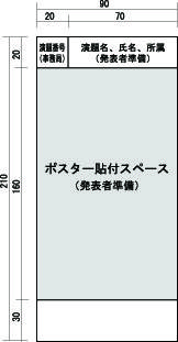 2) ポスターボードの大きさは横90cm×縦210cmです。ポスターボードの上部に演題番号と演題名等を表示するスペースがあります。